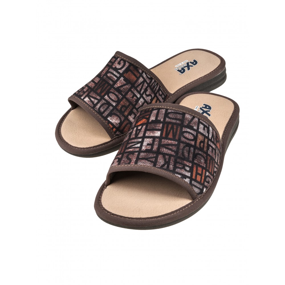 Открытые мужские тапочки AXA shoes — это комфортная обувь для дома, в которой применены уникальные запатентованные технологии. Верх выполнен из хлопка высокого качества. Модель представлена в коричневом цвете. Стельки выполнены из латекса с использованием угольной пыли, которая абсорбирует часть влажности ступни. Данный процесс имеет антибактериальный эффект. Нескользящая подошва из полиуретана с технологий Анти-шок уменьшает нагрузку на позвоночник и суставы. Благодаря технологии DEO-FIT тапочкам можно придать приятный запах, который сохраняется в течение 6 месяцев. Технология DEO-PUSH позволяет продлить этот аромат. Для этого в отверстие с внутренней стороны подошвы можно дозаправить ваш любимый парфюм. Домашняя обувь позволяет снизить усталость в ногах, является прекрасным расслабляющим средством для всех тех, кто в течение дня проводит много времени на ногах. Итак, тапочки AXA shoes - легкие и мягкие, теплые и красивые – идеальное дополнение для домашнего комфорта и станут хорошим дополнением в отпуске или в командировке! Носите с удовольствием!