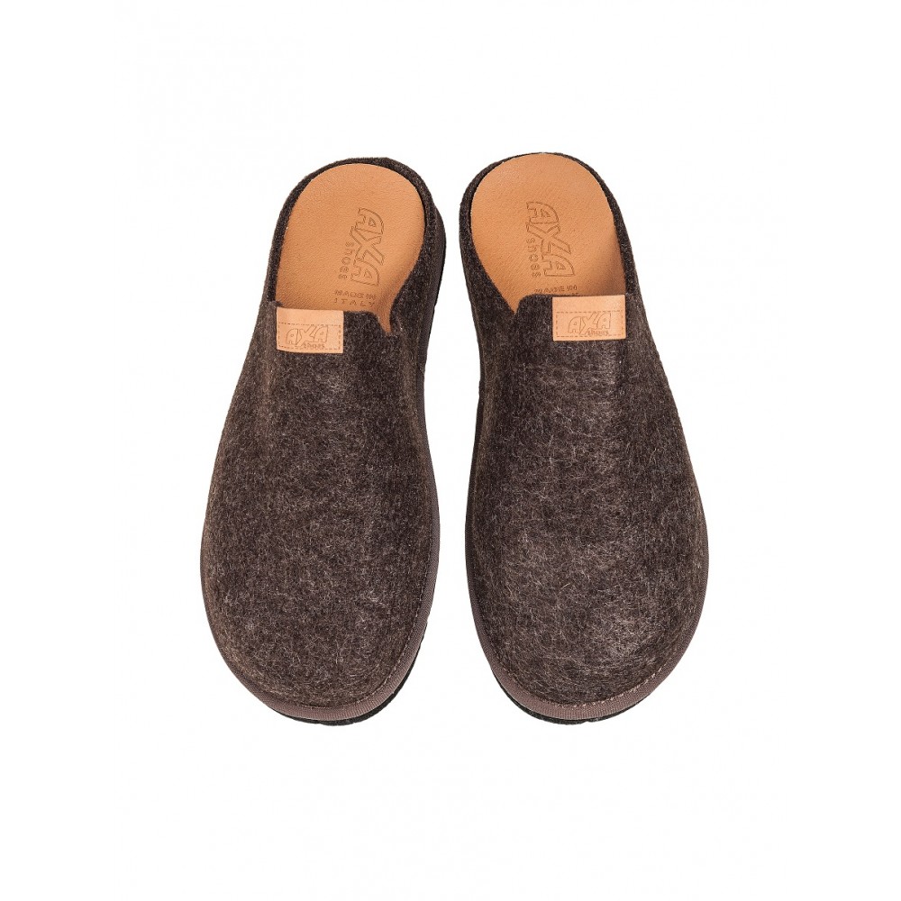 Войлочные закрытые тапочки для мужчины! Облегченная модель! Очень теплые и уютные домашние мужские тапочки AXA в коричневом цвете из войлока сделаны с любовью. Шерстяной войлок - старейший натуральный материал, который обладает уникально низкой теплопроводностью и достаточно хорошо пропускает воздух. Домашние тапочки из войлока достаточно прочны, не пропускают влагу и очень приятные на ощупь. Съёмная стелька из вспененного латекса с утолщением в пяточной части (1,5 см), таким образом снимается нагрузка на весь позвоночник. Нескользящая амортизирующая подошва дарит устойчивость и воздушную легкость. Носите домашнюю обувь AXA и Вы получите истинное удовольствие! И тапочки AXA прекрасный подарок на любой праздник! Носите домашнюю обувь AXA и получайте удовольствие! Обратите внимание, что тапочки AXA произведены в Италии с европейскими размерами, поэтому рекомендуется заказывать комнатные тапочки на размер больше.