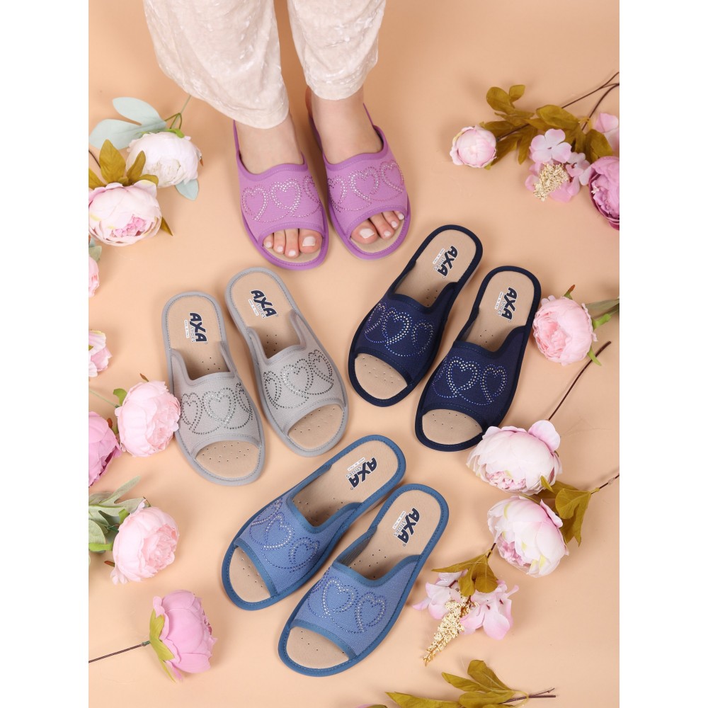Летняя модель домашних тапочек AXA с открытой носочной частью выполнена из натурального хлопка. Оригинальный лиловый цвет. Тапочки не только очень красивые, они имеют ряд анатомических достоинств, подтвержденных международными патентами. Антискользящая подошва из вспененного латекса с эффектом Анти-шок, которая при ходьбе принимаем форму вашей стопы, запатентованные материалы стелек с угольным напылением впитывают излишки влаги ваших ног. Притягивает и запах - нежный, цветочный, слегка неуловимый. Это все благодаря технологии Deo Fit. А технология Deo Push даст вам возможность продлить этот запах через 6 месяцев или заменить его на ваш любимый аромат. Для этого вам необходимо через маленькое отверстие в пяточной части подошвы впрыснуть немного вашего любимого аромата. Всемирно известный производитель домашней обуви компания AXA из Неаполя делает все возможное для комфорта ваших ног.