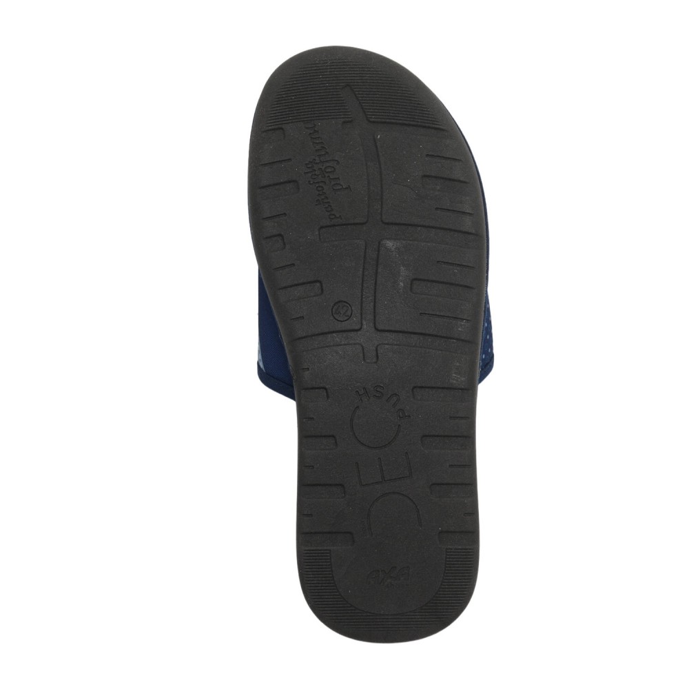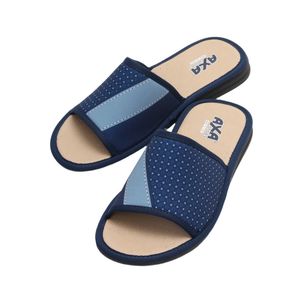 Мужские открытые домашние тапочки AXA shoes — это комфортная обувь для дома, в которой применены уникальные запатентованные технологии. Верх выполнен из хлопка высокого качества. Лаконичный дизайн навеян домашним уютом. Стельки выполнены из латекса с использованием угольной пыли, которая абсорбирует часть влажности ступни. Данный процесс имеет антибактериальный эффект. Специальная подошва из полиуретана с технологий Анти-шок уменьшает нагрузку на позвоночник и суставы. Благодаря технологии DEO-FIT тапочкам можно придать приятный запах, который сохраняется в течение 6 месяцев. Технология DEO-PUSH позволяет продлить этот аромат. Для этого в отверстие с внутренней стороны подошвы можно дозаправить ваш любимый парфюм. Домашняя обувь позволяет снизить усталость в ногах, является прекрасным расслабляющим средством для всех тех, кто в течение дня проводит много времени на ногах. Модель представлена в синем цвете. Итак, тапочки AXA shoes - лёгкие и мягкие, тёплые и красивые – идеальное дополнение для домашнего комфорта и станут хорошим дополнением в отпуске или в командировке! Носите с удовольствием!