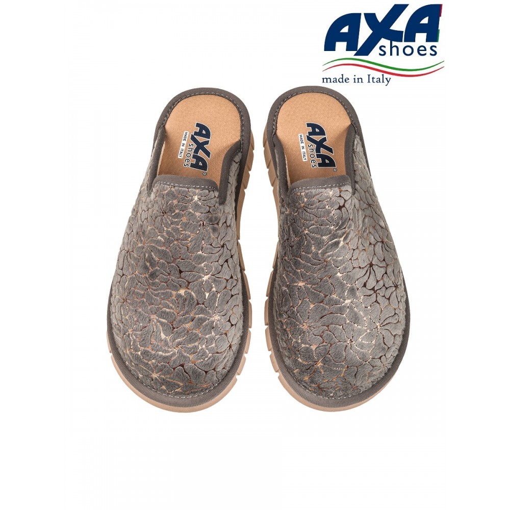 Отличный вариант подарка. Итальянский производитель AXA Shoes Italia представляет комфортные домашние тапочки. Женские тапочки AXA Shoes — это комфортная обувь для дома, в которой применены уникальные запатентованные технологии. Материал верха – велюр, выполнен из натурального качественного хлопка, украшенного стразами. Дизайн придаёт модели особый шарм и навеян домашним уютом. Модель представлена в нескольких цветах. Стельки выполнены из экокожи с использованием угольной пыли, которая абсорбирует часть влажности ступни. Данный процесс имеет антибактериальный эффект. Гибкая подошва из ПВХ имеет подложку из вспененного латекса, который при ходьбе принимает форму вашей стопы. Подошва с технологий «MEMORY» уменьшает нагрузку на позвоночник и суставы.. Домашняя обувь позволяет снизить усталость в ногах, является прекрасным расслабляющим средством для всех тех, кто в течение дня проводит много времени на ногах. Носите удобную и качественную обувь AXA с удовольствием! Обратите внимание, что тапочки AXA произведены в Италии с европейскими размерами, поэтому рекомендуется заказывать комнатные тапочки на размер больше.