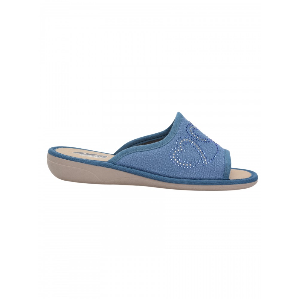 Летняя модель домашних тапочек AXA с открытой носочной частью выполнена из натурального хлопка. Оригинальный голубом цвет. Тапочки не только очень красивые, они имеют ряд анатомических достоинств, подтвержденных международными патентами. Антискользящая подошва из вспененного латекса с эффектом Анти-шок, которая при ходьбе принимаем форму вашей стопы, запатентованные материалы стелек с угольным напылением впитывают излишки влаги ваших ног. Притягивает и запах - нежный, цветочный, слегка неуловимый. Это все благодаря технологии Deo Fit. А технология Deo Push даст вам возможность продлить этот запах через 6 месяцев или заменить его на ваш любимый аромат. Для этого вам необходимо через маленькое отверстие в пяточной части подошвы впрыснуть немного вашего любимого аромата. Всемирно известный производитель домашней обуви компания AXA из Неаполя делает все возможное для комфорта ваших ног.
