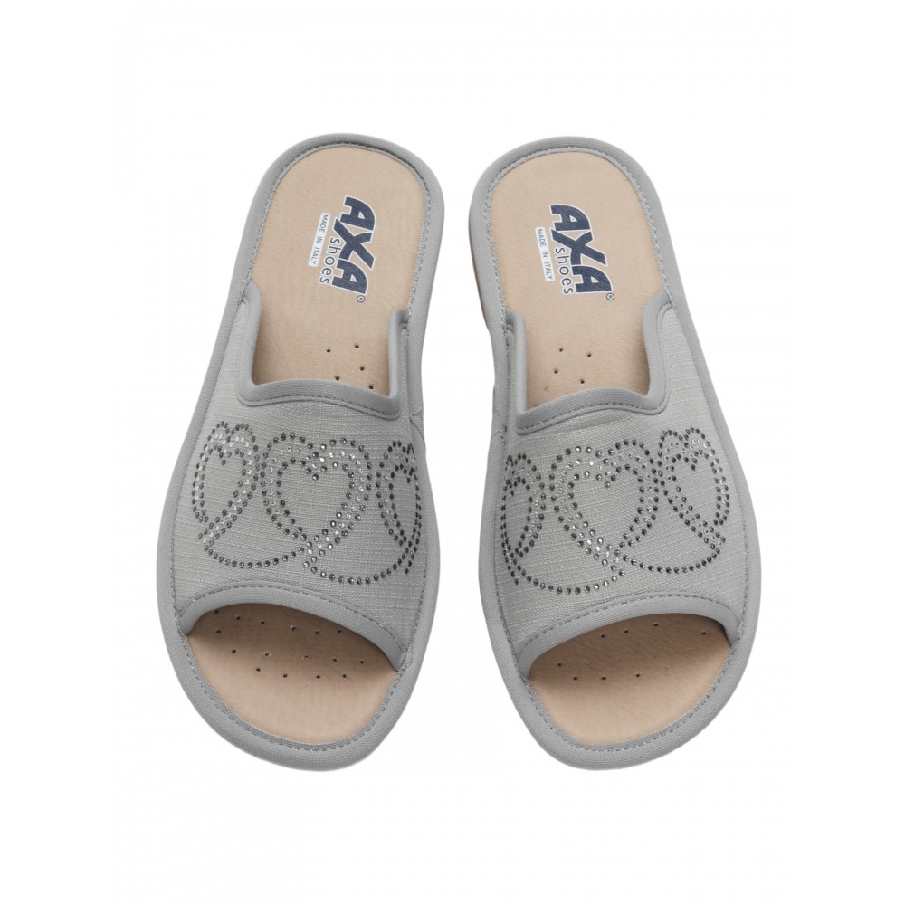Летняя модель домашних тапочек AXA с открытой носочной частью выполнена из натурального хлопка. Оригинальный сером цвет. Тапочки не только очень красивые, они имеют ряд анатомических достоинств, подтвержденных международными патентами. Антискользящая подошва из вспененного латекса с эффектом Анти-шок, которая при ходьбе принимаем форму вашей стопы, запатентованные материалы стелек с угольным напылением впитывают излишки влаги ваших ног. Притягивает и запах - нежный, цветочный, слегка неуловимый. Это все благодаря технологии Deo Fit. А технология Deo Push даст вам возможность продлить этот запах через 6 месяцев или заменить его на ваш любимый аромат. Для этого вам необходимо через маленькое отверстие в пяточной части подошвы впрыснуть немного вашего любимого аромата. Всемирно известный производитель домашней обуви компания AXA из Неаполя делает все возможное для комфорта ваших ног.